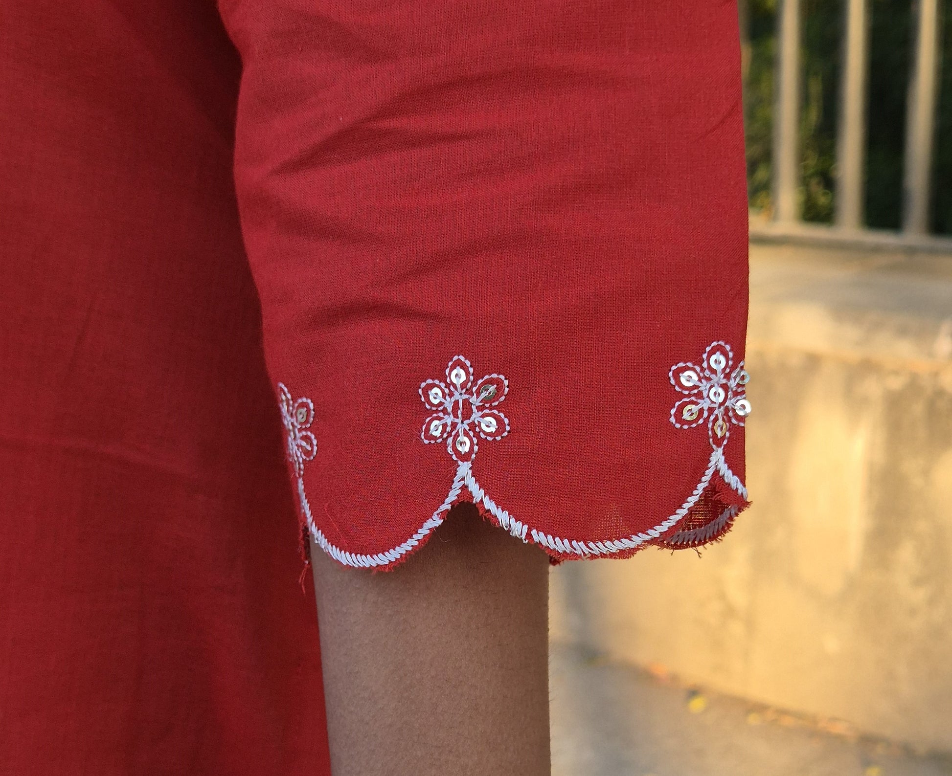 Sleeves: 3/4th sleeves with embroidered sleeve cuff & tie-up accents.