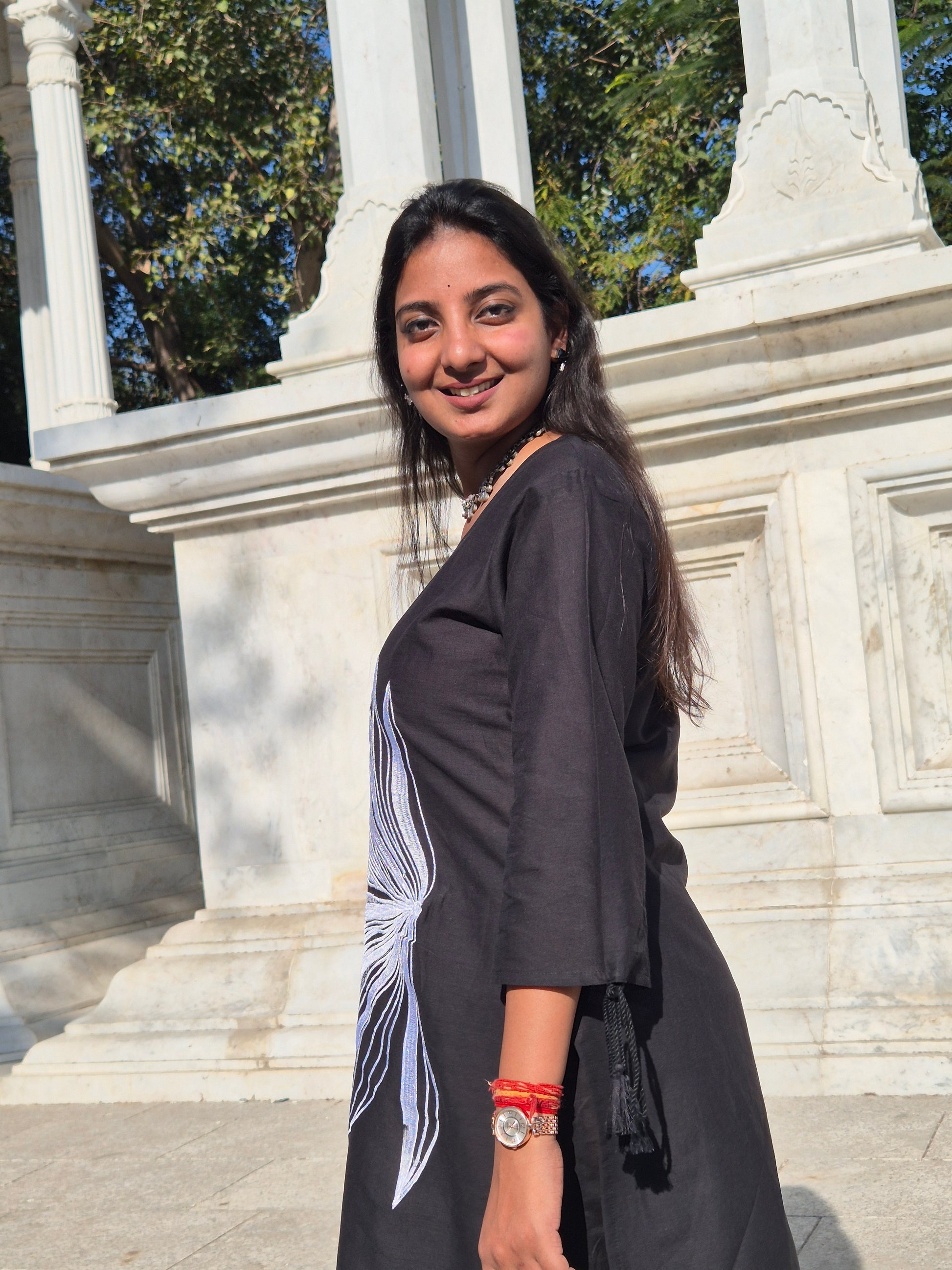 Shadow Leaf Embroidered Cotton Kurta