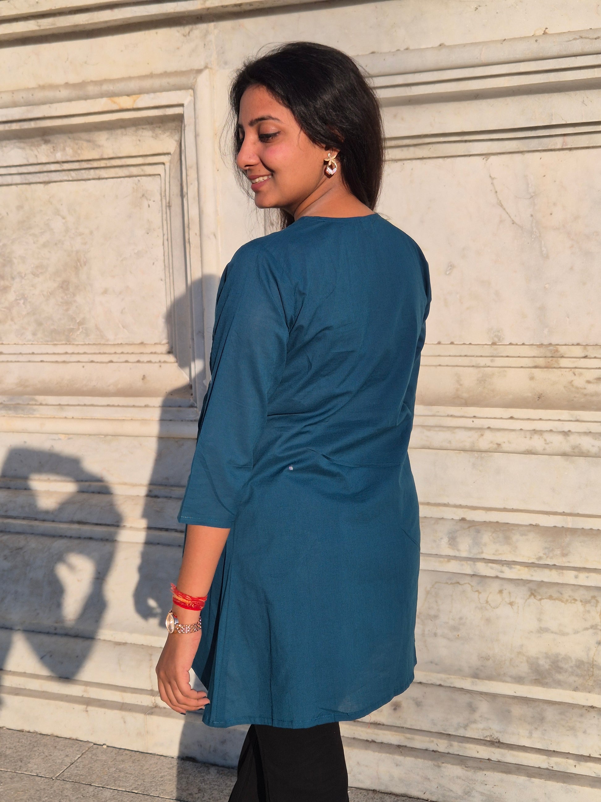 Short Kurta / Tunic Length — pairs beautifully with jeans, trousers, palazzos or straight pants.